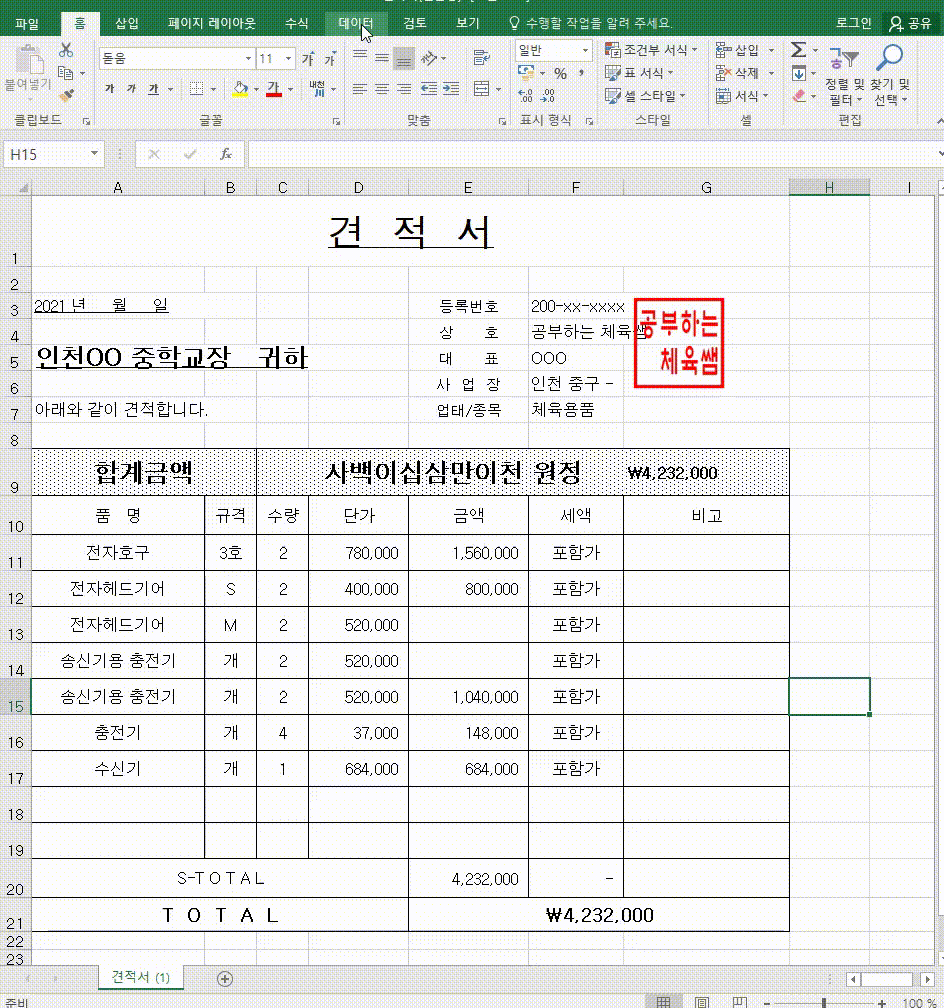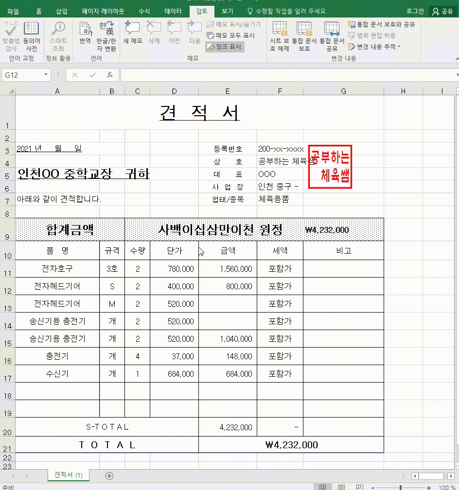 - 시트보호로 인해 수정이 불가능한 경우 수정을 위해 시트보호 해제하기.
