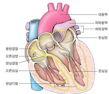 - 심장의 주기적인 수축과 이완은 동방결절에 의하여 조절된다.