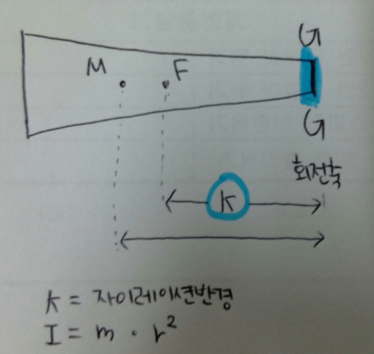 - 관성모멘트는 선운동에서의 관성과는 달리 질량뿐만아니라 회전축 주위에 분포되어있는 질점의 상태에 의항 결정된다. 즉, 동일 자세에서도 회전축이 바뀌면 관성모멘트도 변화가 생긴다.