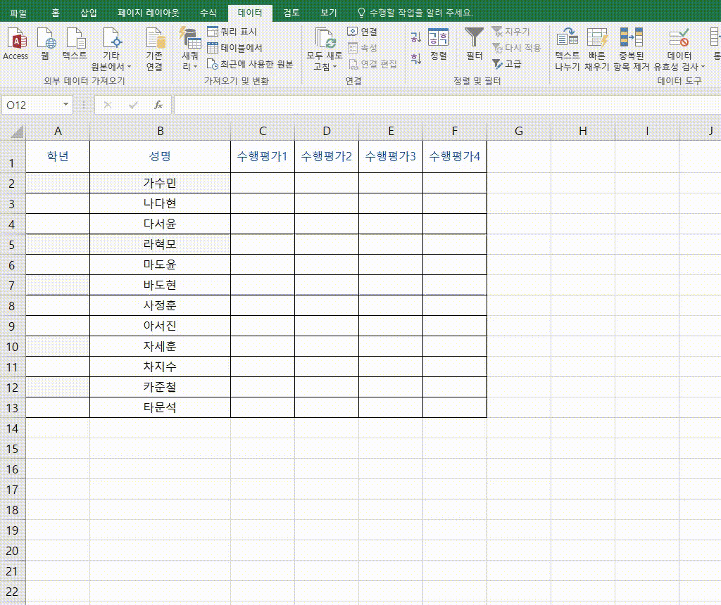 2) 상황 2 : 1학년, 2학년, 3학년 범위 내에서 입력 되도록 설정하기.