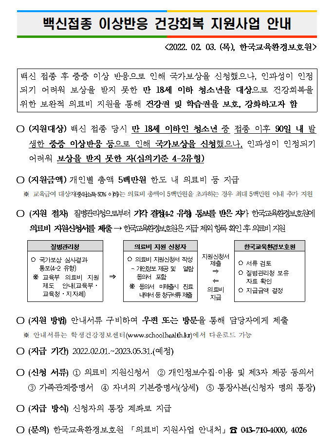- 만 18세 이하 청소년 중 접중 이후 90일 내 발생한 중증 이상반응 등으로 국가보상을 신청했으나, 인과성이 인정되기 어려워 보상을 받지 못한 학생 (심의시준 4-2유형)