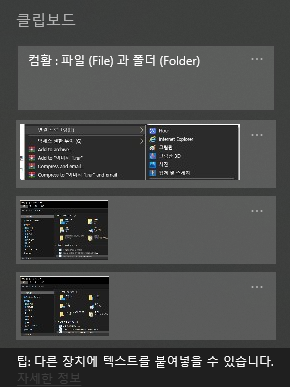- 복사, 이동, 캡쳐 등의 마지막 작업을 저장하는 임시 기억 장소