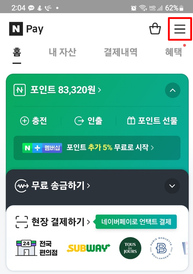 2) 휴대폰으로 네이버페이 앱 접속