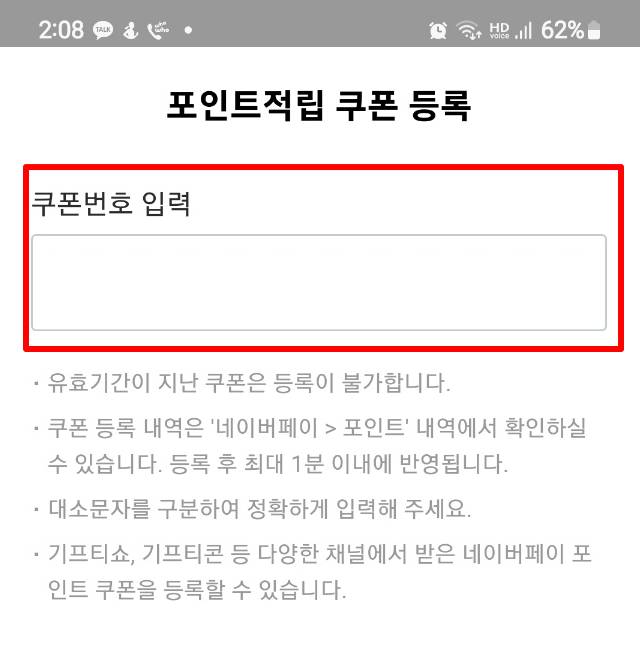 3) 쿠폰번호 입력 후 네이버 페이 지급받기