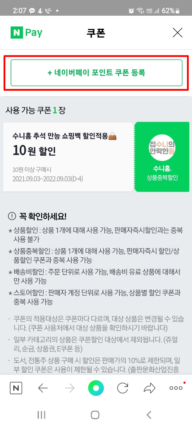 * 스마일콘 네이버페이 모바일 쿠폰 등록 방법
