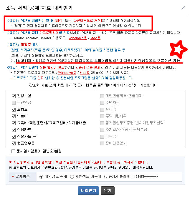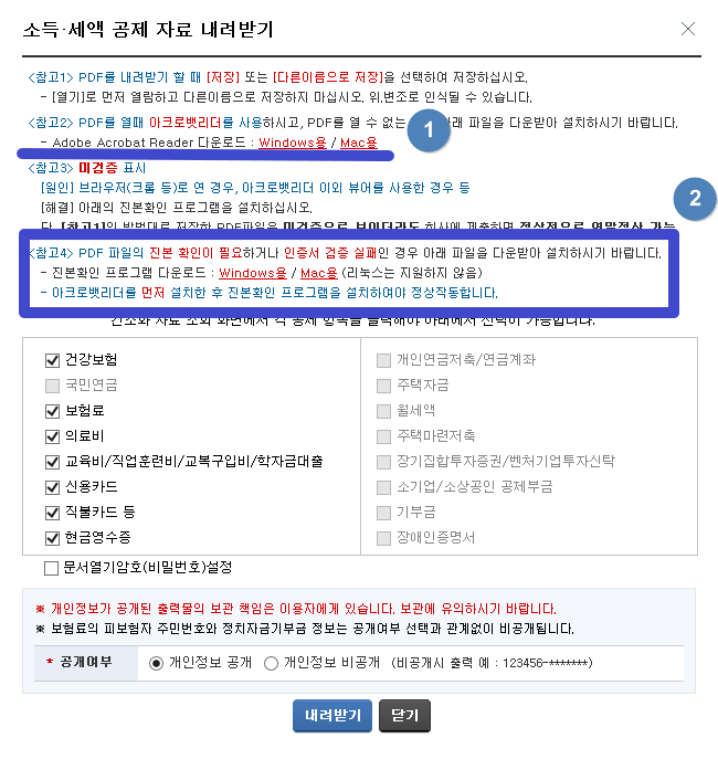 - PDF 내려받기을 열기로 먼저 열람한 뒤 저장하면 위, 변조로 인식될 수 있으니, 처음부터 [저장] or [다른이름으로 저장]을 선택하여 저장하도록 한다.