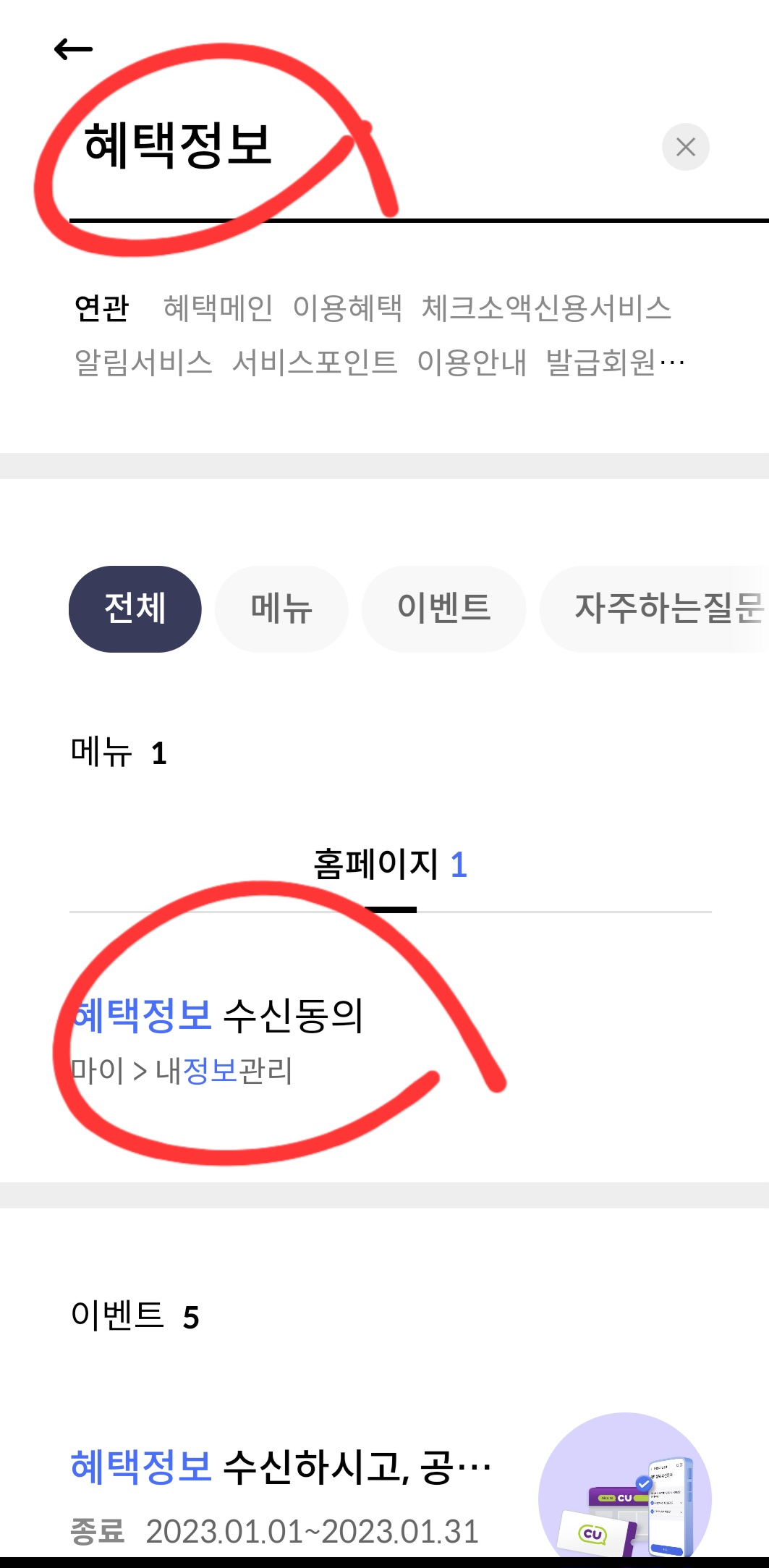 2. 혜택정보 입력 하여 검색 - 혜택정보 수신동의