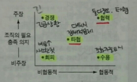 사람들은 갈등상황에 마주하면 갈등에 반응하는 방식이 서로 다르다. 갈등을 받아들이는 방식은 총 5가지로 분류할 수 있다.