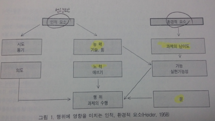 성향적 요인은 내적 귀인(개인적 귀인)과 외적 귀인(상황적 귀인)으로 나뉜다.