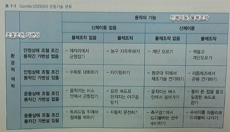 1)환경의맥락 2)동작의 기능에 근거한 운동기술 분류방법 (Gentile. 2000)