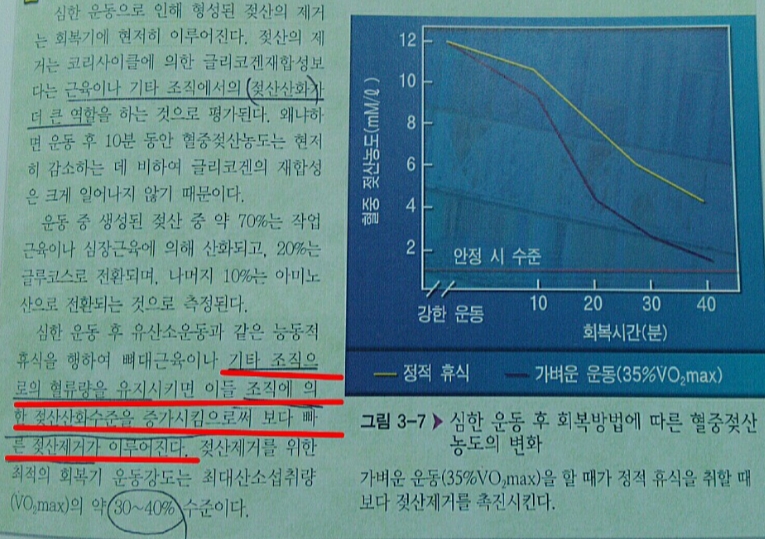 - 동적 운동은 젖산제거를 조금 더 빠르게 돕는다.