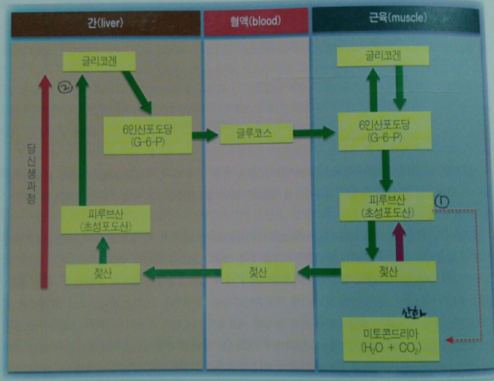 - 20%는 코리싸이클을 통하여 포도당으로 전환