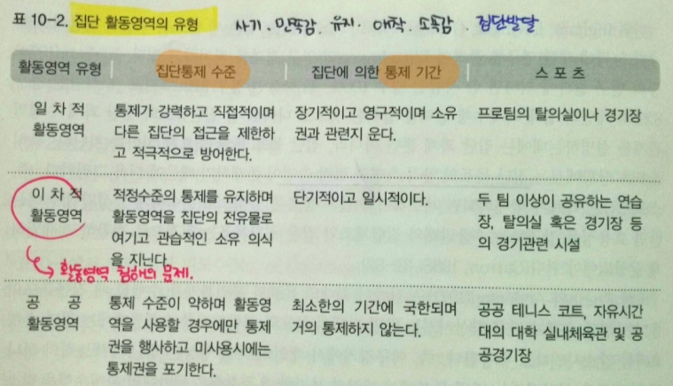 - 홈구장의 권역의식 최대화, 상대구장 권역의식 최소화시켜 과제 수행의 항상성 유지. (심리적요인)