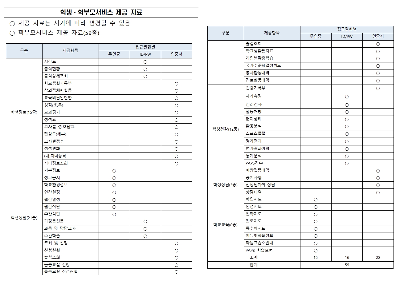- 학부모 나이스 서비스 제공 자료 59종