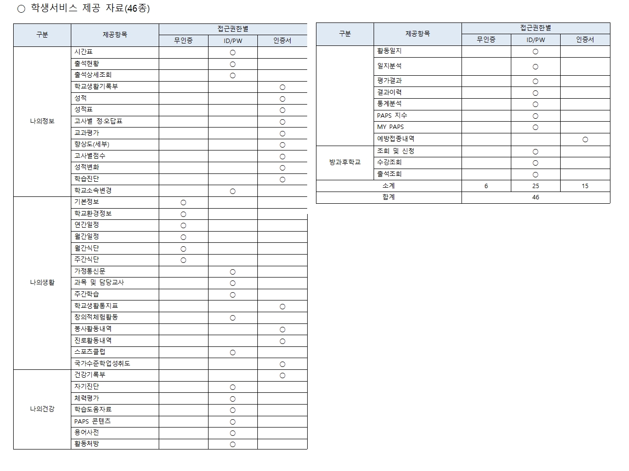 - 학생 나이스 서비스 제공 자료 46종