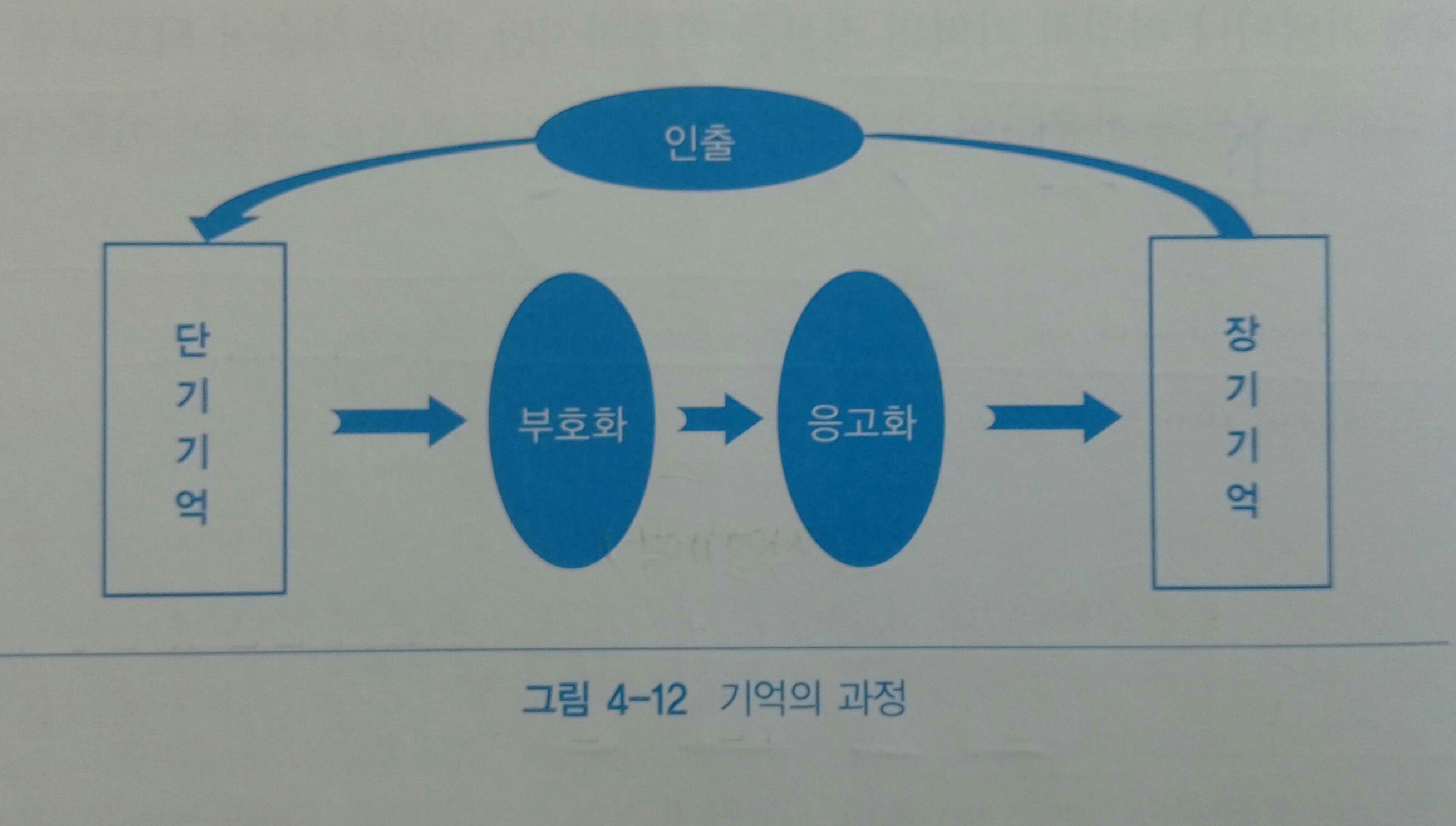 기억의 과정은 부호화, 응고화, 인출의 과정으로 분류되며 정보의 획득에서부터 당기적으로 기억괸 정보를 인출에 이르는 과정에 초점을 둔다.