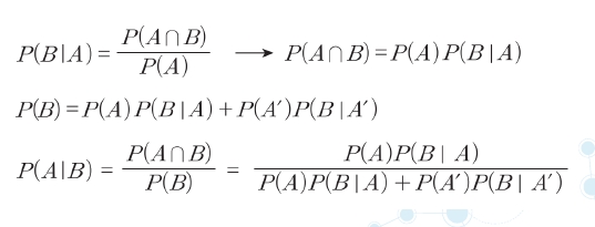 - 주어진 사건과 관련있는 여러가지 확률을 이용하여 새롭게 일어날 수 있는 사후 사건 확률을 추론한다.