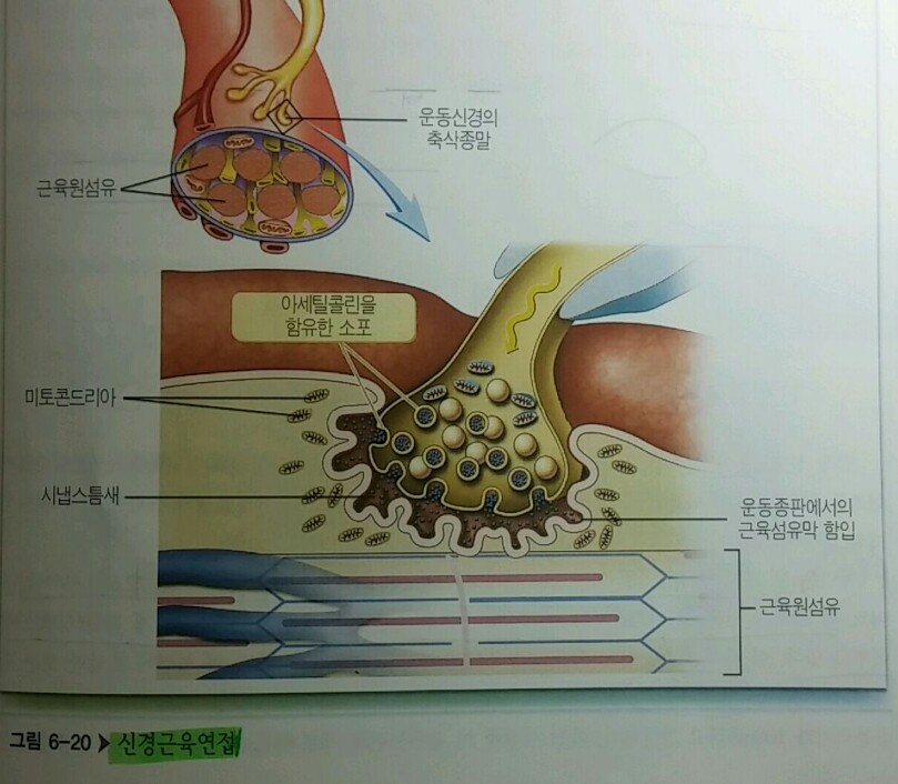 - 신경근육연접 : 신경이 근육과 연접하는 것으로, 신경전달물질은 아세틸콜린이다