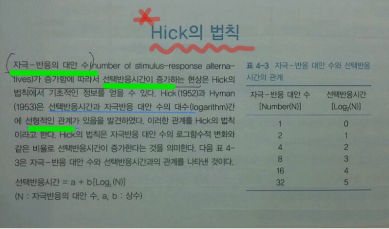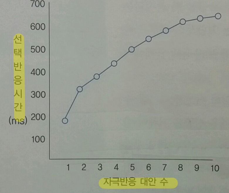 - 선택반응시간연구 : 1) 자극-반응의 대안 수, 2) 자극-반응의 적합성