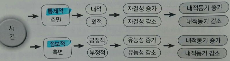 - 인간의 행동(사건)은 통제적측면과 정보적측면, 무동기 측면 등 3가지 측면을 모두 갖고 있는데, 통제적측면은 자결성과 관련있고, 정보적측면은 유능성과 관련이 있다.